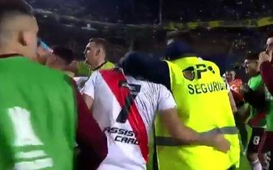 ¡EL ABRAZO DEL HOMBRE DE SEGURIDAD A LOS JUGADORES DE RIVER QUE SE HIZO VIRAL! 🤗#LibertadoresxFOX Imperdible momento durante los festejos millonarios en La Bombonera.
