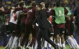El final del partido en la Bombonera marcó el estallido de alegría en el banco riverplatense, encabezado por Marcelo Gallardo que festejó la clasificación a la final de la Copa.