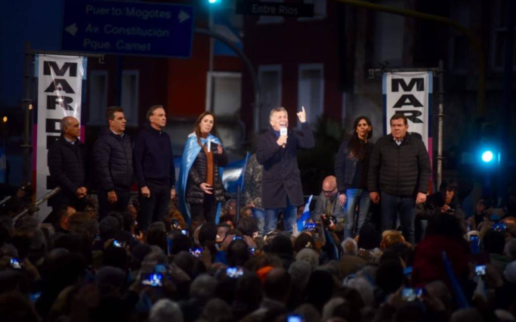 Durante el masivo acto, que se realizó en la tradicional avenida Luro, el mandatario estuvo junto a su compañero de fórmula, Miguel Pichetto, y la gobernadora María Eugenia Vidal, entre otros referentes de Juntos por el Cambio.