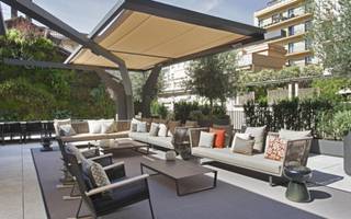 Los muebles de salón y terraza también fueron elegidos para leer como un solo espacio.