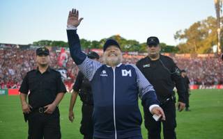 Una vez finalizada la larga fila para saludar a Diego, el entrenador de Gimnasia tomó un micrófono y le habló a la gente allí presente. Visiblemente emocionado, y con lágrimas en los ojos, Maradona expresó: “Estuve hablando con la gente de Newell’s, algún día nos veremos. Yo no hablo por hablar. No quiero poner calientes a los de en frente. Yo soy leproso y a mí no me compra nadie. Gracias por venir, gracias por el recibimiento, gracias por esto. Gracias por este amor. Mañana cumplo años y lo voy a compartir con ustedes. A todos ustedes los voy a tener grabado en mi memoria. Y a lo mejor algún día vuelvo a esta cancha, para luego iniciar una vuelta por el campo de juego e ir saludando a todos los costados”, expresó.