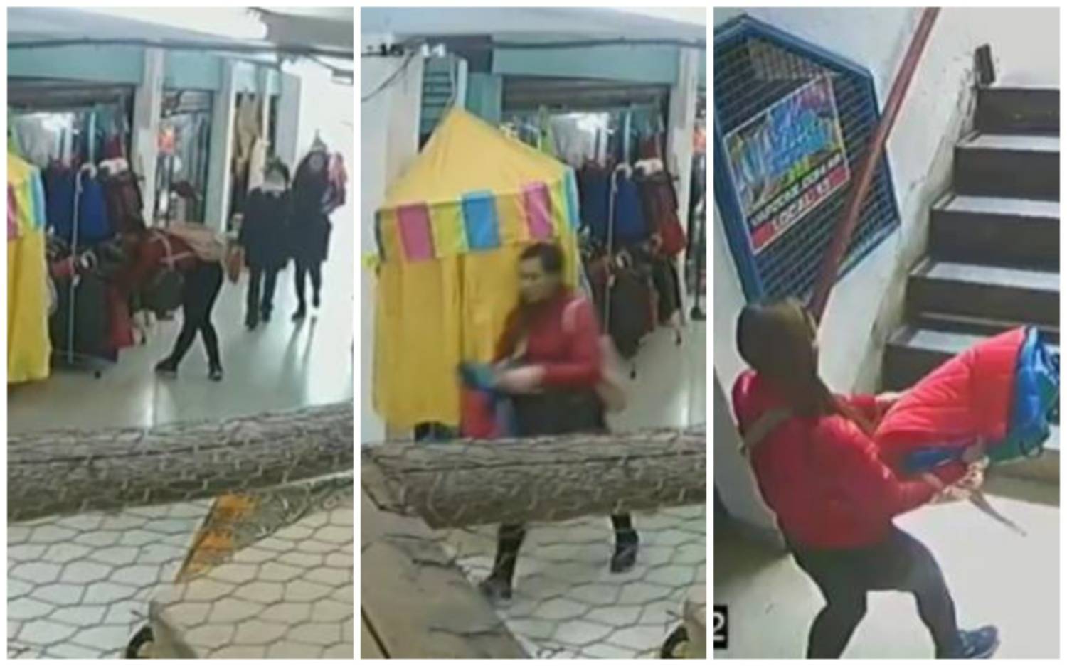 Si bien en los distintos videos que se conocieron no se ve más que la presencia de la responsable de los hurtos, una empleada del negocio víctima del robo, aseguró que alcanzó a ver el arrebato de las prendas.