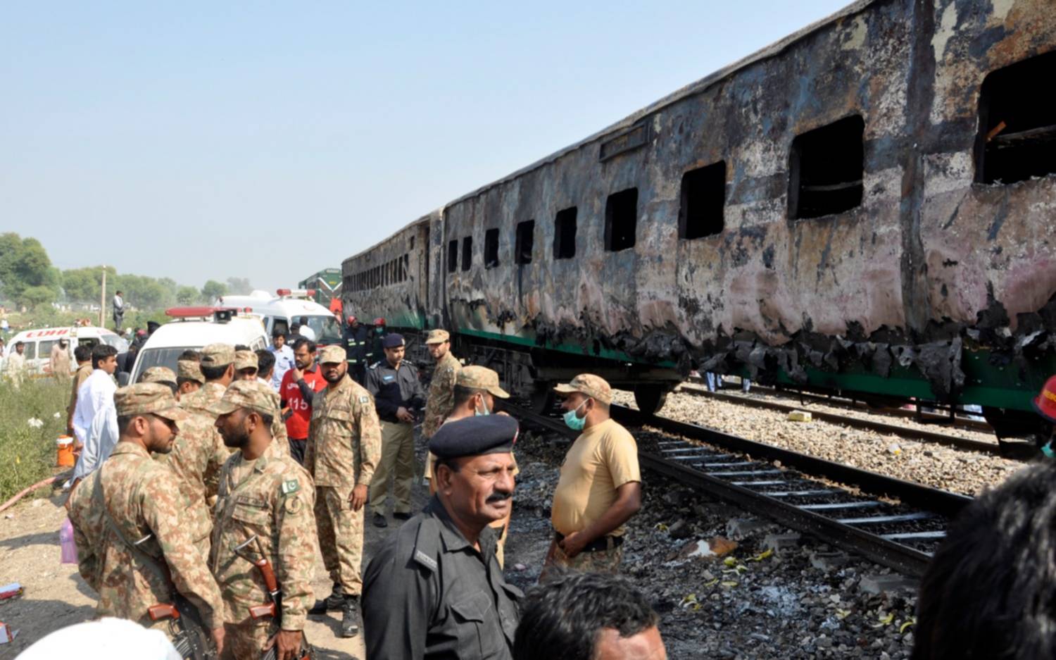 Al menos 74 personas, entre ellas numerosos peregrinos, murieron ayer en el incendio de un tren de pasajeros en el sur de Pakistán, provocado por la explosión accidental de una garrafa de gas utilizada para preparar el desayuno a bordo. El tren llevaba 857 pasajeros. La mayoría de las víctimas pertenecían a una organización de misioneros islámicos. (EFE)