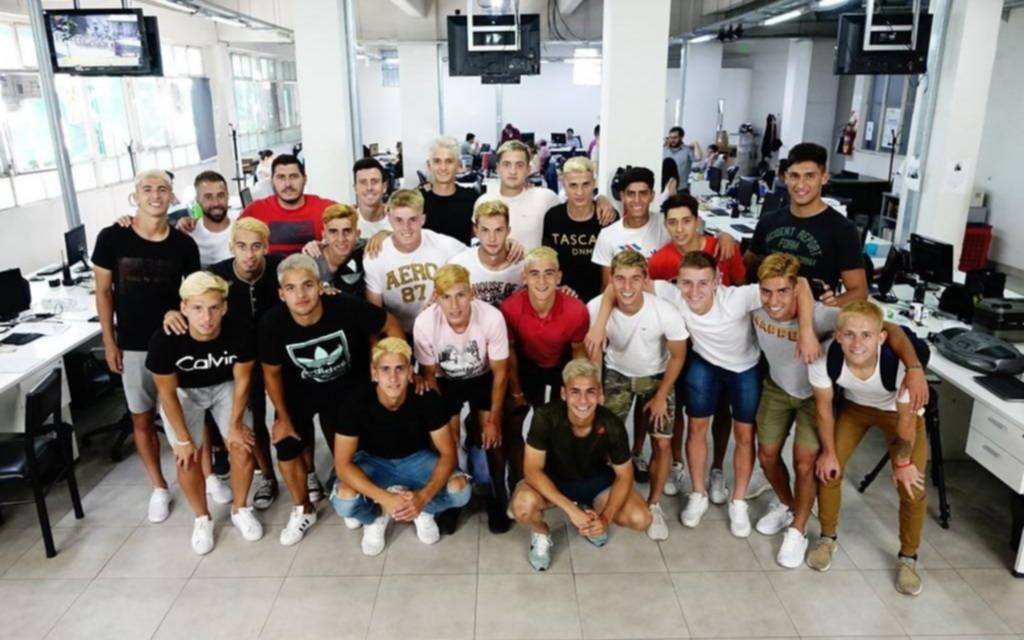 Tras dar la vuelta olímpica el pasado sábado en Avellaneda, todo el plantel de la 2001 se tiñó el pelo de rubio cumpliendo la promesa que habían hecho en la previa. Ese fue su look en la visita a este medio.