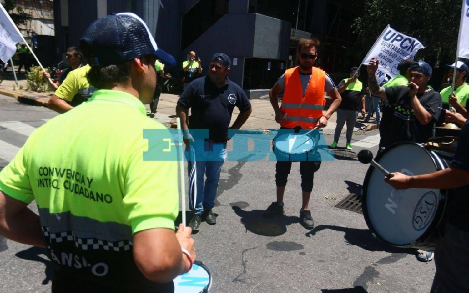 Este mediodía la situación empeoró ya que los agentes comunales cortaron la calle en 20 y 50 con bombos y banderas para hacer oír sus reclamos, entre los que se encuentra un aumento de sueldo, más allá del bono de $3.000 que les darán a fin de año, según precisaron.