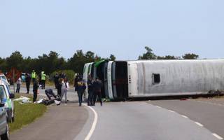En tanto, una de las niñas accidentadas ayer en el vuelco del colectivo de dos pisos en la ruta 2 sufrió la amputación de su brazo izquierdo, se encuentra con respirador y pronóstico reservado, mientras que los restantes 9 chicos que permanecen internados en distintos centros de salud evolucionan favorablemente, informaron fuentes médicas.
