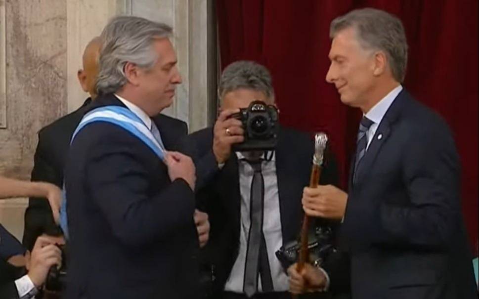 Al entrar, el presidente saliente saludó al flamante mandatario, en medio de un griterío de los partidarios que cantaban la marcha peronista y entonaban estrofas con consignas kirchneristas. A Fernández se lo vio claramente emocionado cuando la locutora oficial lo anunció como “presidente electo de la unidad de los argentinos”.