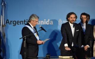 Alberto Fernández publicó pasadas las 16 su primera foto en el sillón presidencial, que era parte de una serie de imágenes que incluyó una postal curiosa: a su hijo Estanislao sosteniendo uno de los atributos presidenciales.