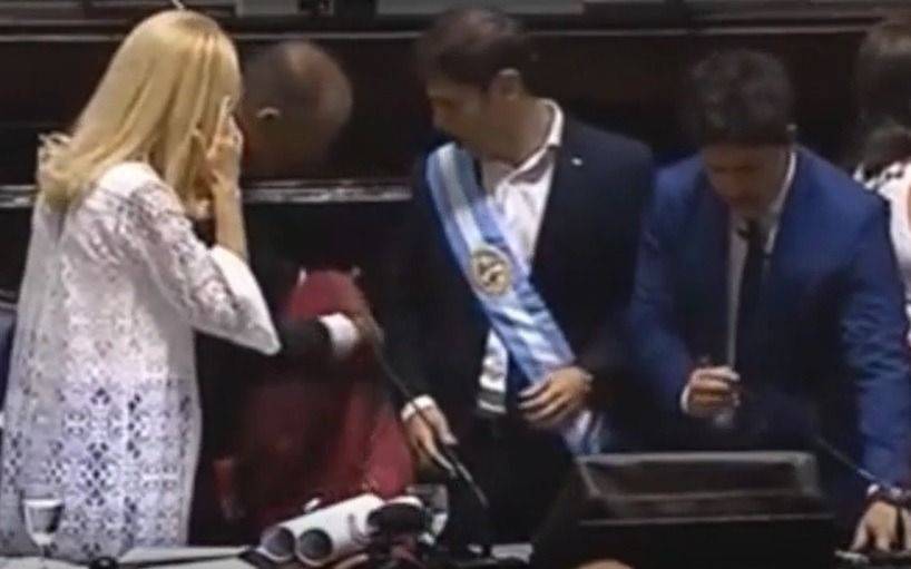 Más allá de eso, durante la mañana hubo algunas perlitas. Y una de ellas fue el momento previo a brindar un extenso discurso en la Legislatura Bonaerense.