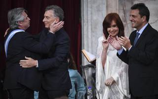 El abrazo entre Cristina y Alberto tras los juramentos de rigor ante la Asamblea/afp