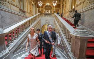 La flamante primera dama lució un sobrio diseño en rosa empolvado