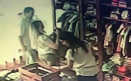 También se puede apreciar que gracias a la amplia camisa que lleva puesta, se torna casi imposible para la dueña del local percibir el manojo de ropa de niños que el sospechoso tenía en su pantalón.