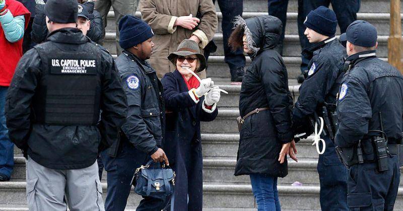 Jane Fonda lidera a un grupo de actrices que se junta regularmente en Washington para protestar contra el cambio climático, a las que se sumó Sally Field, quien, como el resto, fue arrestada. Por supuesto, el arresto está en los cálculos: no se presentan cargos y son liberadas rápidamente.