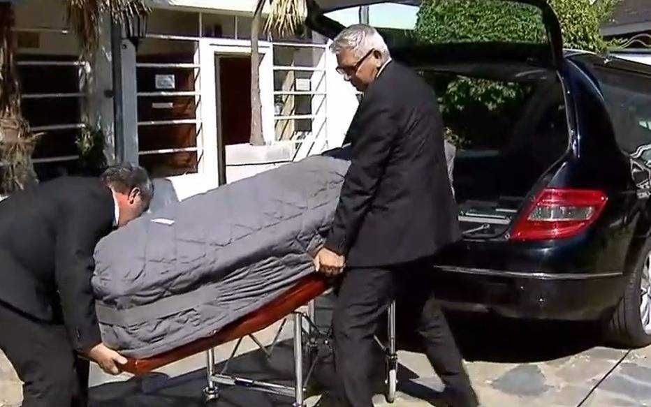 En ese marco, el féretro con los restos de Lorenzo fue ingresado a la parroquia sostenido por un grupo de personas.