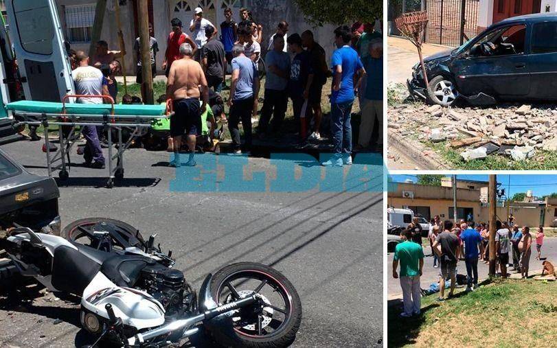 La colisión ocurrió en 74 y 116 alrededor de las 14 hs. por causas que eran materia de investigación y causó una fuerte conmoción entre los vecinos, ya que un chico que viajaba en la moto quedó tendido en el asfalto con golpes en distintas partes del cuerpo.