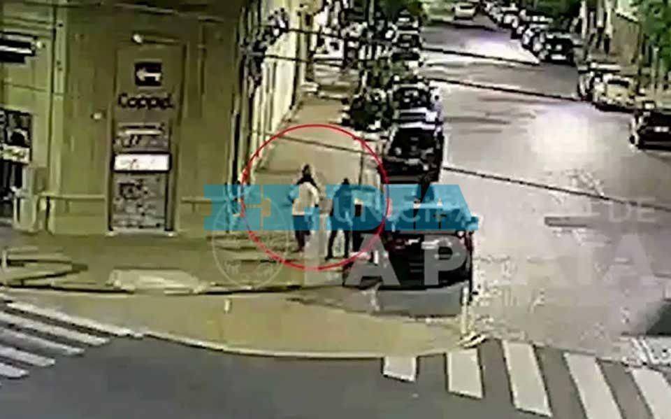 En las filmaciones puede verse a tres personas -aparentemente con arma de fuego-, que se le acercaron corriendo a un hombre que estaba por subirse a un auto, le sacaron sus pertenencias y huyeron en dirección a calle 3.