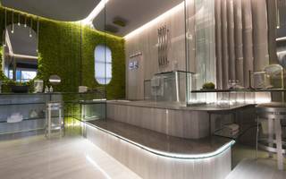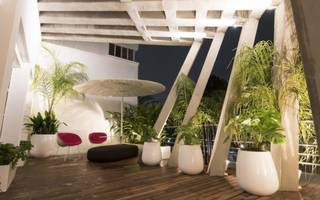 La iluminación es preponderante en el espacio, donde las plantas están iluminadas con manojos de fibra óptica a la manera de pequeñas luciérnagas, los decks con artefactos de piso muy sutiles y también con unos huevos de resina cristalina color ámbar