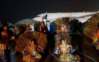 Macri fue recibido por el primer ministro Narendra Modi y el presidente Ram Nath Kovind, en una ceremonia realizada en el imponente palacio presidencial Rashtrapati Bhavan. Macri y Awada llegaron a los jardines del Palacio donde los esperaba el mandatario indio, acompañado de su esposa, y el premier y, desde allí los jefes de Estado se dirigieron al salón donde mantuvieron un encuentro.