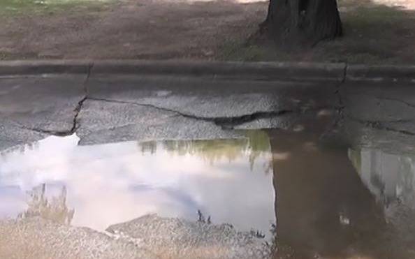 "Hace tres o cuatro meses que hay una pérdida de agua. Con el tránsito se fue deteriorando el asfalto. Es un desastre", relató un vecino respecto al problema en diagonal 74 y 115.