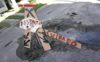 Otro auto quedó encajado en un pozo ubicado en calle 7 y 495, en Villa Castells. “Las calles están destruidas en un 80%, hay pluviales que no se destapan y cuando llueve se inunda todo el barrio; el 70% de calles están a oscuras”, denunciaron.