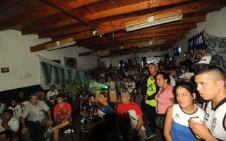 En la medida que pasaban los minutos los plateístas miraban a los suplentes que hacían su trabajo precompetitivo en un costado de la cancha.