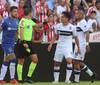 -A criterio de Delfino fue una jugada de peligro. Faravelli disputó una pelota con la pierna más alta de lo normal y trato ganarle la posición. Creo que estuvo bien expulsado.