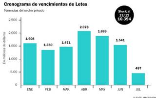 Para las Letes, el Tesoro adjudicó U$S 854 millones, cuando vencían U$S 913 millones. El precio de corte fue de U$S 974,76, lo cual representa una tasa nominal 4,50%.