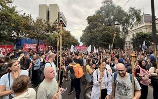 FOTOS | Otra jornada de clases públicas frente del departamento de Adorni en el centro de La Plata