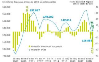 Según los datos del Indec, el cuarto trimestre el PBI mostró una caída interanual del 6,2% con respecto a igual periodo de 2017 y del 1,2% contra el trimestre anterior, siendo la cuarta caída trimestral consecutiva en la serie desestacionalizada. Es decir que todos los trimestres de 2018 la actividad se contrajo contra el periodo inmediato anterior y para encontrar un nivel de PBI más bajo hay que remontarse al segundo trimestre del 2012.