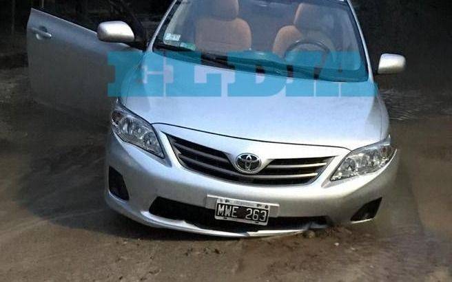 Según denunció el conductor, mientras circulaba por la arteria en plena lluvia, se topó con un pozo repleto de agua y su auto quedó atrapado de trompa en el pavimento.