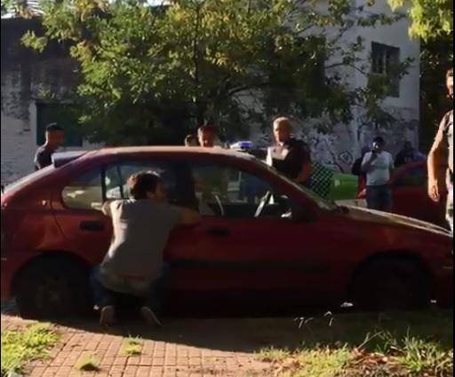 Momentos de preocupación se vivieron ayer en la esquina de 1 y 58 cuando vecinos observaron que un nene discapacitado estaba encerrado en un auto estacionado en el lugar. Las personas que se reunieron allí tras percatarse de la situación, dieron aviso a la Policía y al mismo tiempo rodearon el vehículo para ver de qué forma podían ayudar o contener al chiquito. “El se ríe, pobrecito. Es un nene discapacitado”, dijo una mujer que tomó imágenes con su teléfono celular. “No puede abrir, está todo cerrado”, comentó un hombre. Tras la denuncia, llegaron efectivos policiales y de bomberos dispuestos a liberar al niño, aunque para alivio de todos los presentes, finalmente se hizo presente la madre. Según una testigo, el niño permaneció dentro del habitáculo durante media hora.