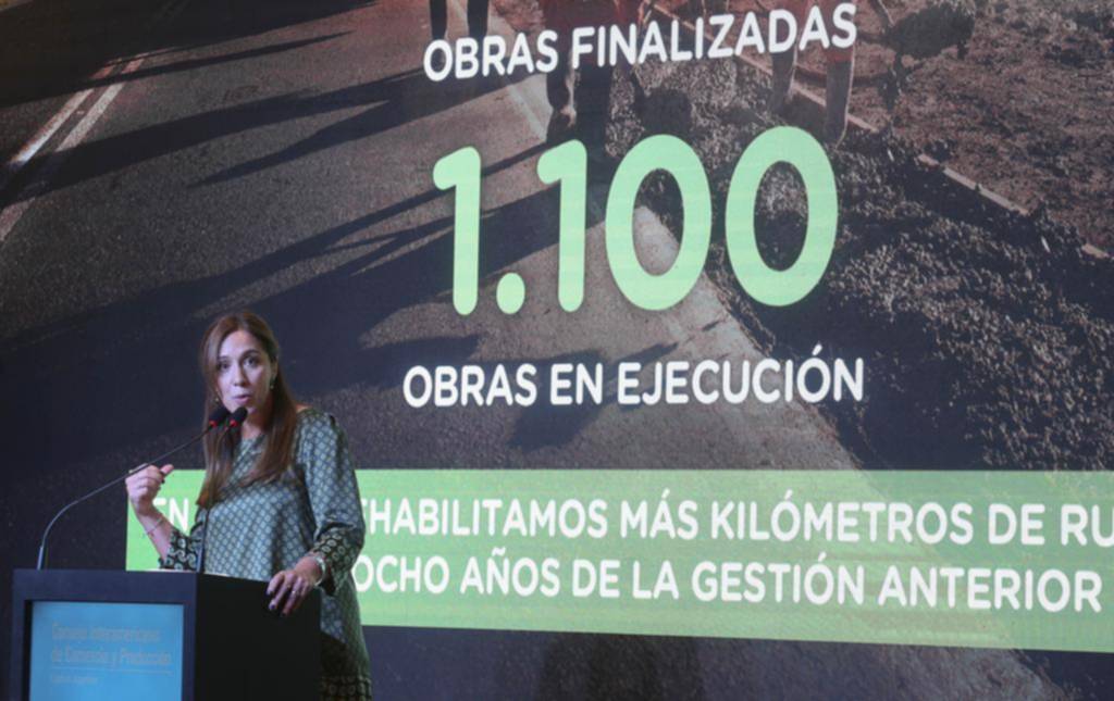 La gobernadora arrancó diciendo que era “muy bueno” el balance que hacía de sus casi cuatro años de gestión en la Provincia, pese a los “momentos difíciles” del país: “Tuvimos una cantidad de logros estructurales que si los prometía en la campaña de 2015, nadie me hubiera creído”, señaló desde un estrado, acompañada de gráficas que mostraban números positivos en distintos renglones, desde aspectos en materia de salud y de educación, hasta las reformas policiales y penitenciarias.