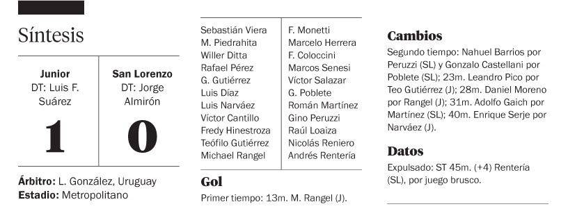 Junior de Colombia, que no había sumado puntos en el Grupo F de la presente Copa Libertadores, sorprendió anoche en Barranquilla a San Lorenzo, cuya clasificación a octavos no pudo asegurar por más que tiene todo a favor.