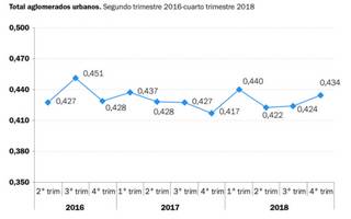 La mayor desigualdad en la distribución del ingreso coincidió con que los salarios registrados quedaron 17,9 puntos detrás de la inflación en 2018, al haber aumentado 29,7%% en un año en que los precios se aceleraron al 47,6% y en que las pautas paritarias quedaron por detrás del índice de precios del año.