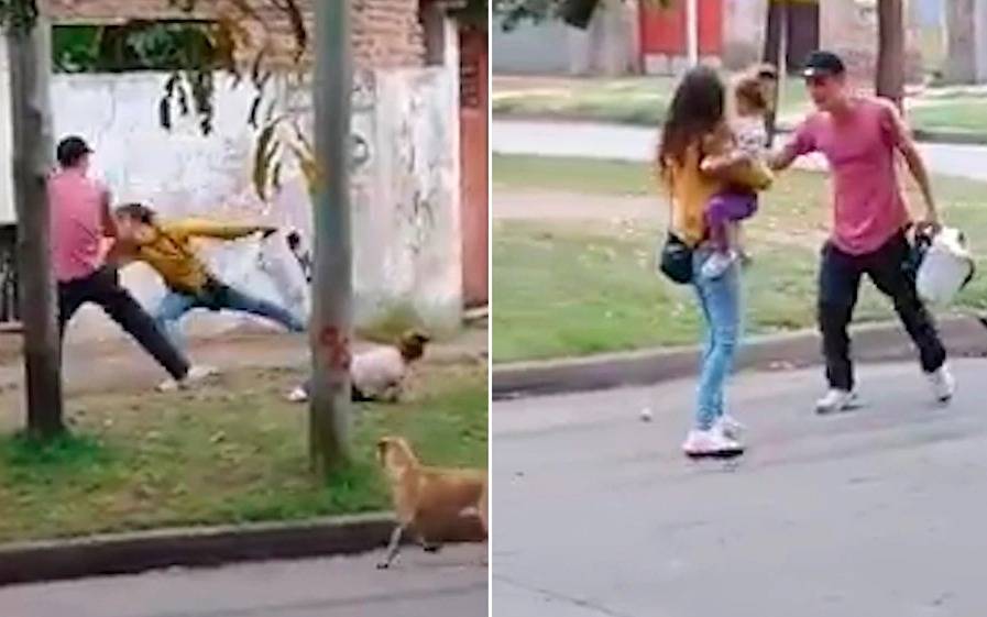 El caso salió a la luz a partir de un video en el que se ve a un sujeto golpeando ferozmente a una mujer que se encontraba en una esquina de dicha localidad cargando a una criatura que, según se presume, sería su hija.