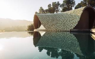 Ubicada en Sídney, la vivienda presenta una escultura singular y ondulada que recorre exuberantes jardines costeros con vistas encantadoras del puerto.