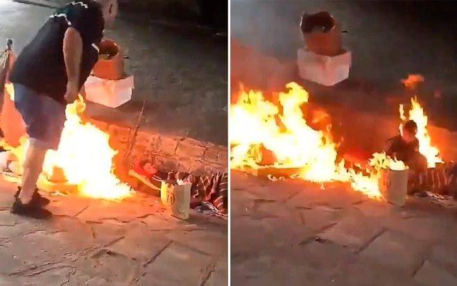 Un video que comenzó a viralizarse en las redes sociales muestra a un hombre prendiendo fuego a dos personas en situación de calle y escapando del lugar mientras insultaba a las víctimas.