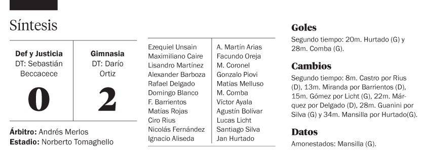 Gimnasia volvió a hacerlo. En un gran partido personal, sólido, prolijo y paciente, el equipo del Indio “planchó” el trámite ante Defensa y Justicia, lo derrotó por 2 a 0 en Varela y se metió en los cuartos de final de la Copa de la Superliga. Jan Hurtado y Maximiliano Comba, los gritos Triperos.