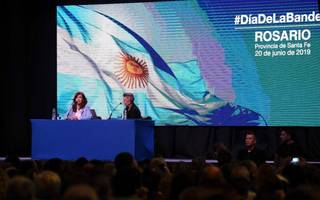 La senadora nacional y candidata a vicepresidente Cristina Fernández de Kirchner se refirió al creador del pabellón nacional, Manuel Belgrano, en el marco de la presentación de su libro Sinceramente en la ciudad de Rosario.