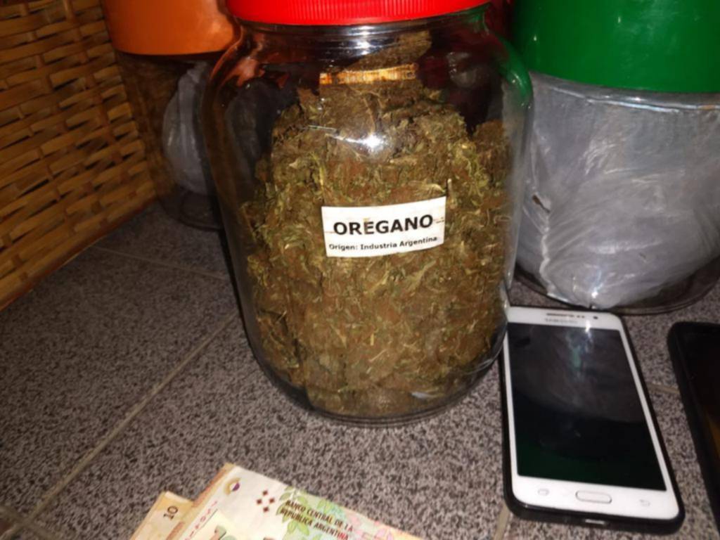 Los efectivos policiales revisaron el comercio y encontraron que en un frasco que también estaba rotulado como orégano había 723 gramos de marihuana fraccionada.