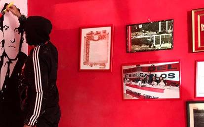 En tanto, en el otro costado de la pared, también se pueden observar pintadas las copas Libertadores e Intercontinental obtenidas por el Club.