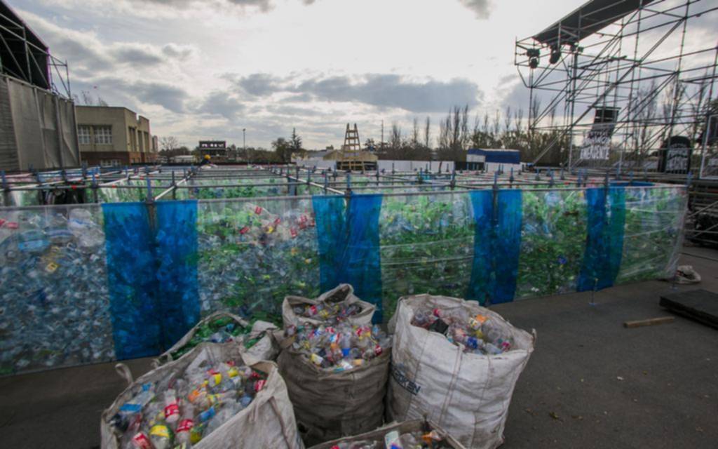 El laberinto instalado en el Estadio -una instalación de 300 metros cuadrados- se construyó con botellas de plástico que se reunieron en algunas campañas más unidades que Pavelic y Schumann pidieron “en préstamo” a cooperativas locales de reciclado. Concluido el encuentro en el Estadio, el material será devuelto a esos equipos de recuperadores y seguirá así su ciclo de reconversión.
