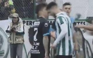 A minutos del inicio del partido, fuerte cabezazo de Reynoso al 7 de Villa San Carlos, Lugones. No hubo expulsión.#PrimeraCenDEPORTV pic.twitter.com/UNdpp2fNoY