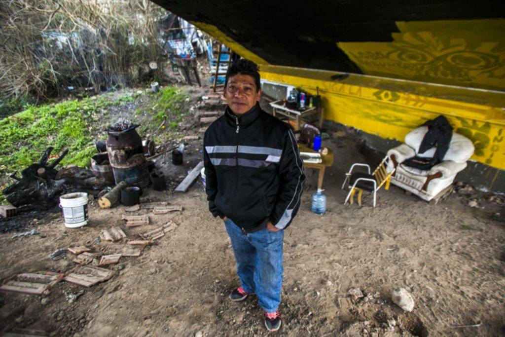 “La policía jamás me vino a sacar. Saben que no le hago mal a nadie. Aún más, me crucé a las trompadas contra gente que quiso quedarse acá pero no tenía buenas intenciones. No quiero que me molesten ni embromar a nadie. Me separé de mi mujer que vive en una casa nueva del barrio que armaron en Ringuelet para que se mudaran quienes vivían al costado del arroyo El Gato. Tenemos dos hijos de 11 y 12 años. Antes de vivir en cualquier lugar a la intemperie, me quedé acá, que tengo un techo, por decirlo de alguna manera”, cuenta el hombre que hace casi una década se emplazó debajo de la estructura de hormigón, considerada patrimonio cultural de la Ciudad.