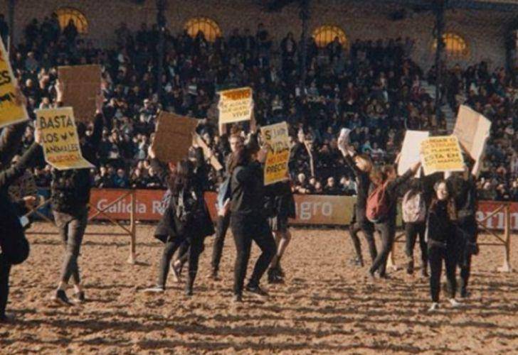 Mientras se realizaba una actividad de doma de caballos, un grupo de más de 40 activistas saltó a la plaza e interrumpió el evento para dejar en claro su mensaje.