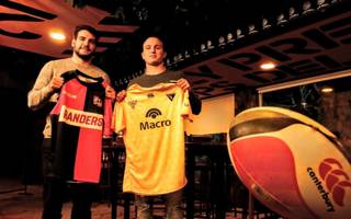 Pablo Matera y el platense Agustín Creevy en la ciudad de Christchurch, Nueva Zelanda / prensa Jaguares