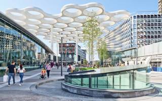 En este caso se trata de una fachada asimétrica, muy ornamentada y ciertamente exótica. Una burbuja de cristal adorna la parte inferior a modo de solarium, en su entorno galerías y terrazas que conectan en los diferentes pisos el interior con el exterior en la que, además, las cerámicas adornan de manera iridiscente balaustradas y escaleras.
