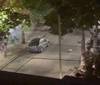 Según se ve en el video, poco después llegaron al lugar dos policías en motocicleta, quienes se acercaron Gómez -un hombre de gran porte, vestido con un pantalón negro, una remera negra y pulóver rojo- cuando ocultaba sus manos en la espalda.