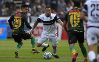Comba gana en lo alto, en un duelo aéreo ante dos hombres de defensa. Gimnasia careció de juego y de actitud. se profundiza la crisis / Demian Alday