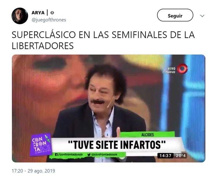 Luego de que el árbitro chileno Julio Bascuñán decretara el final del encuentro, las redes sociales se inundaron de memes haciendo referencia al logro obtenido por el plantel de Marcelo Gallardo, a la detención y al gol de De La Cruz y por supuesto al Superclásico copero que se reeditará el martes 1 de octubre a las 21.30 en el Monumental, la ida, y la vuelta el 22 de ese mes, también martes, en el mismo horario, en la Bombonera.